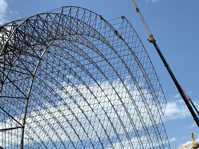 (2)网架加工前应对现场尺寸进行复测,确认无误后方可进行加工、安装;网架制作、运输、安装应遵守《空间网格结构技术规程》JGJ7-2010、《钢网架荆州螺栓球节点》JG/T 10-2009、《钢网架荆州螺栓球节点用高强度螺栓》 GB/T 16939-2016、《荆州钢结构荆州工程荆州施工规范》 GB50755-2012、《荆州钢结构荆州工程荆州施工质量验收标准》 GB50205-2020。